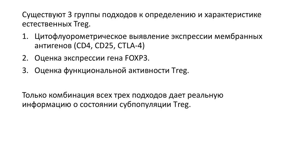Существуют 3 группы подходов к определению и характеристикеестественных Treg.