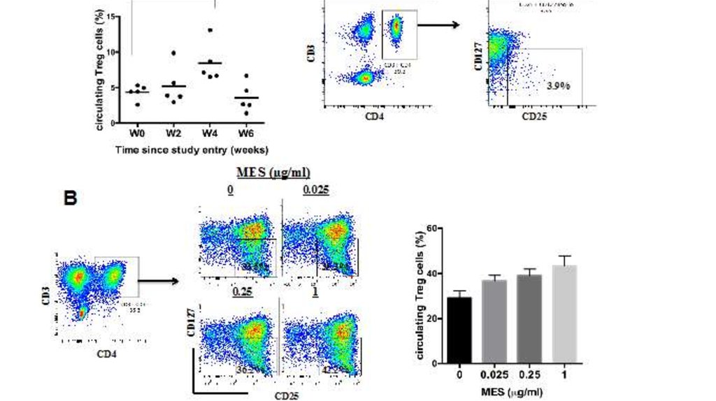 • Содержание клеток с мембранным фенотипом CD4+ CD25+ впериферической крови составляет 2-3,5% от числа