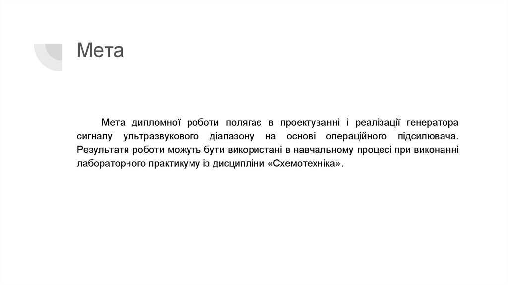 МетаМета дипломної роботи полягає в проектуванні і реалізації генератора
