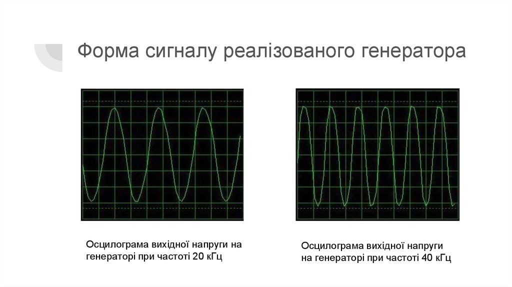 Форма сигналу реалізованого генератораОсцилограма вихідної напруги на