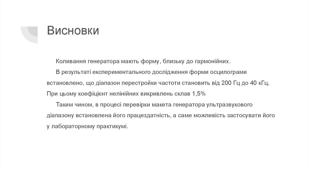 ВисновкиКоливання генератора мають форму, близьку до гармонійних.