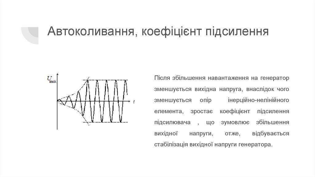 Автоколивання, коефіцієнт підсиленняПісля збільшення навантаження на генератор