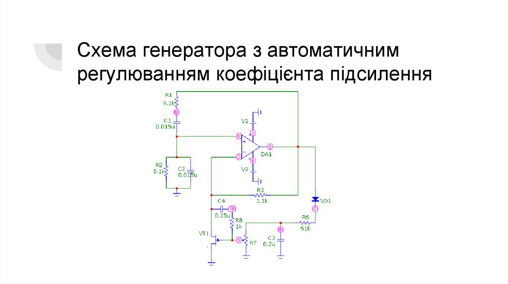 Схема генератора з автоматичнимрегулюванням коефіцієнта підсилення