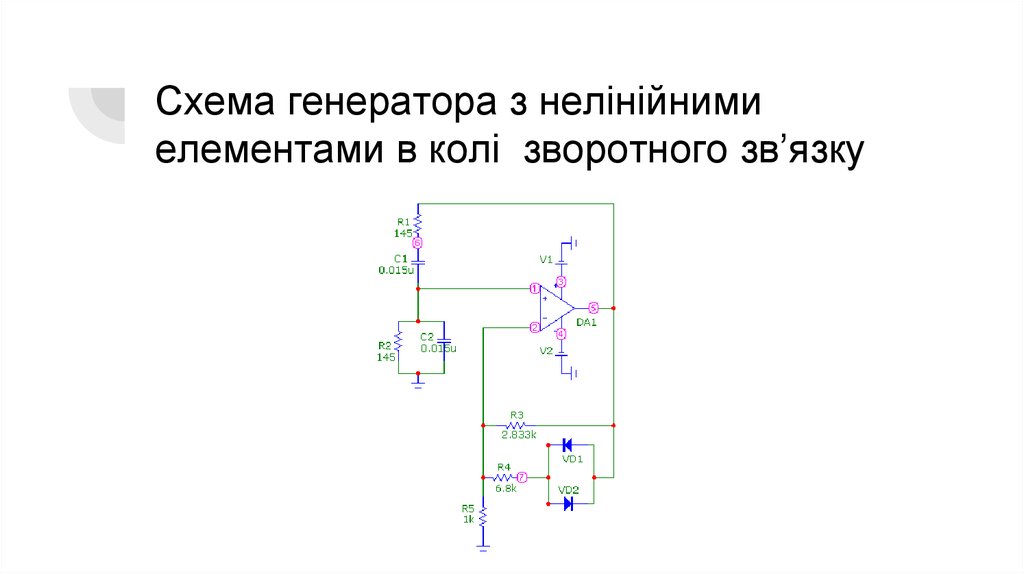 Схема генератора з нелінійнимиелементами в колі зворотного зв’язку