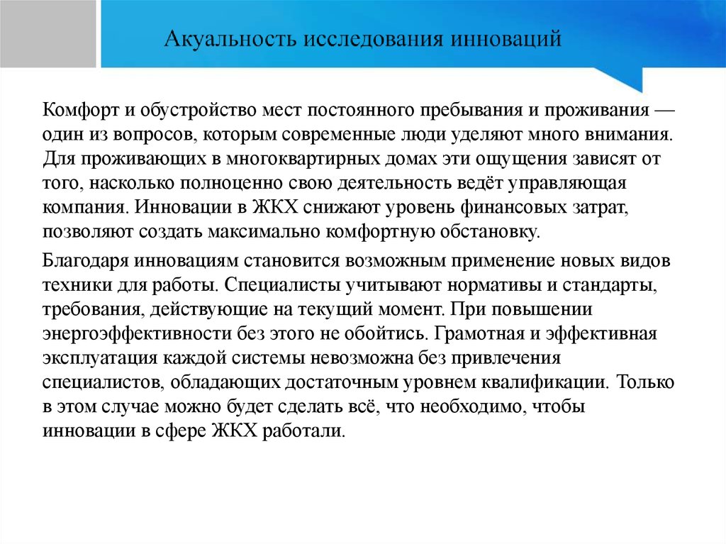 Аттестационная работа. Инновации в сфере жилищно-коммунального хозяйства