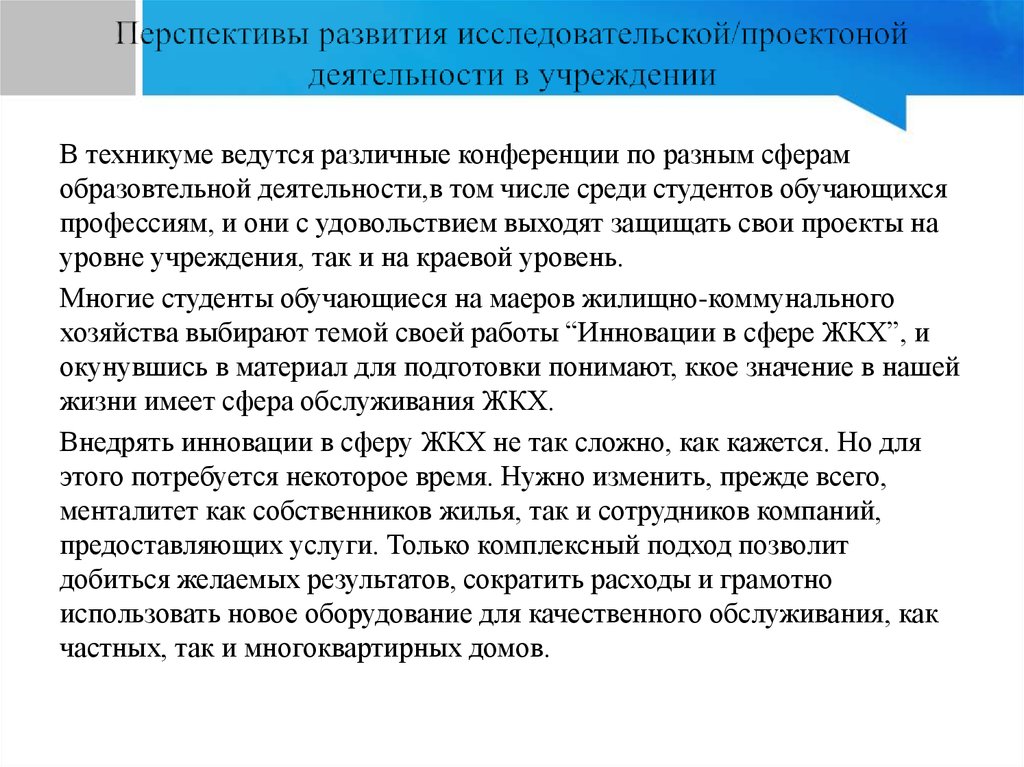 хозяйства выбирают темой своей работы “Инновации в сфере ЖКХ”, и