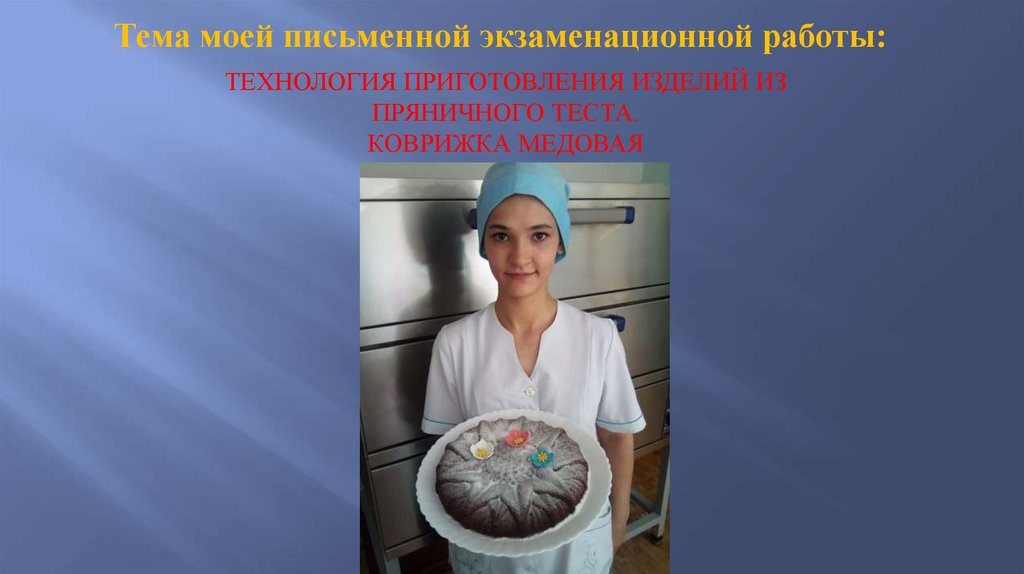 Тема моей письменной экзаменационной работы:ТЕХНОЛОГИЯ ПРИГОТОВЛЕНИЯ ИЗДЕЛИЙ ИЗ