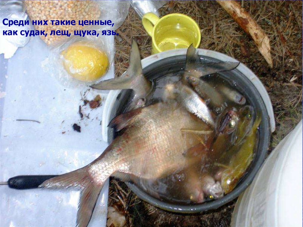 Среди них такие ценные,как судак, лещ, щука, язь.