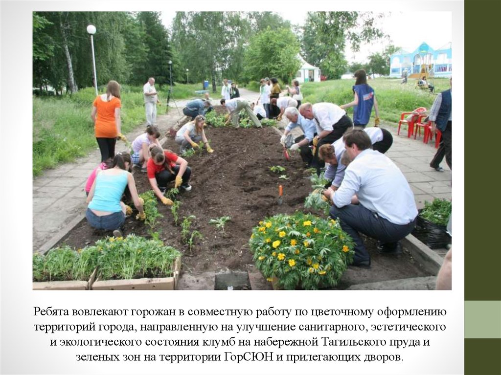 Ребята вовлекают горожан в совместную работу по цветочному оформлениютерриторий города, направленную на улучшение санитарного, эстетического