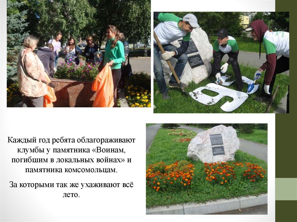 Каждый год ребята облагораживаютклумбы у памятника «Воинам,