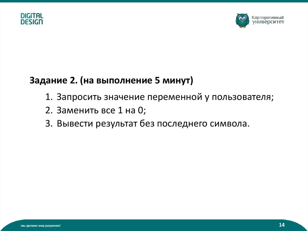 Задание 2. (на выполнение 5 минут)1. Запросить значение переменной у пользователя;