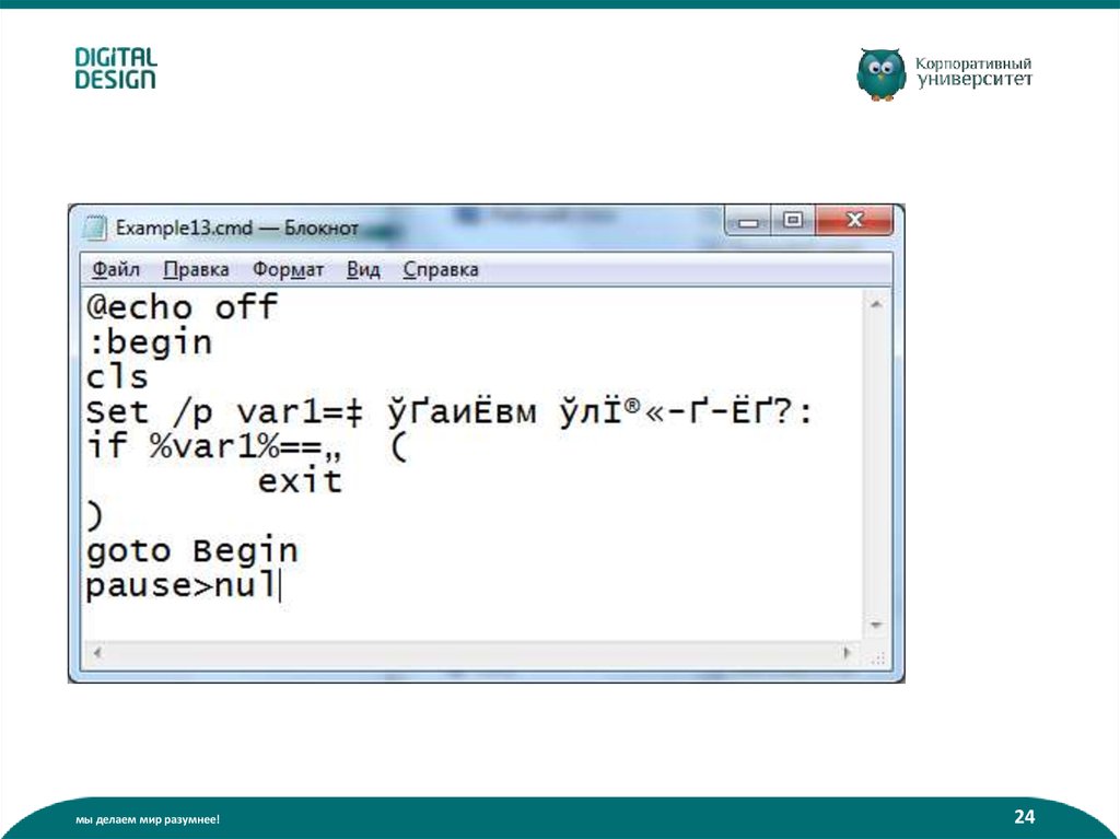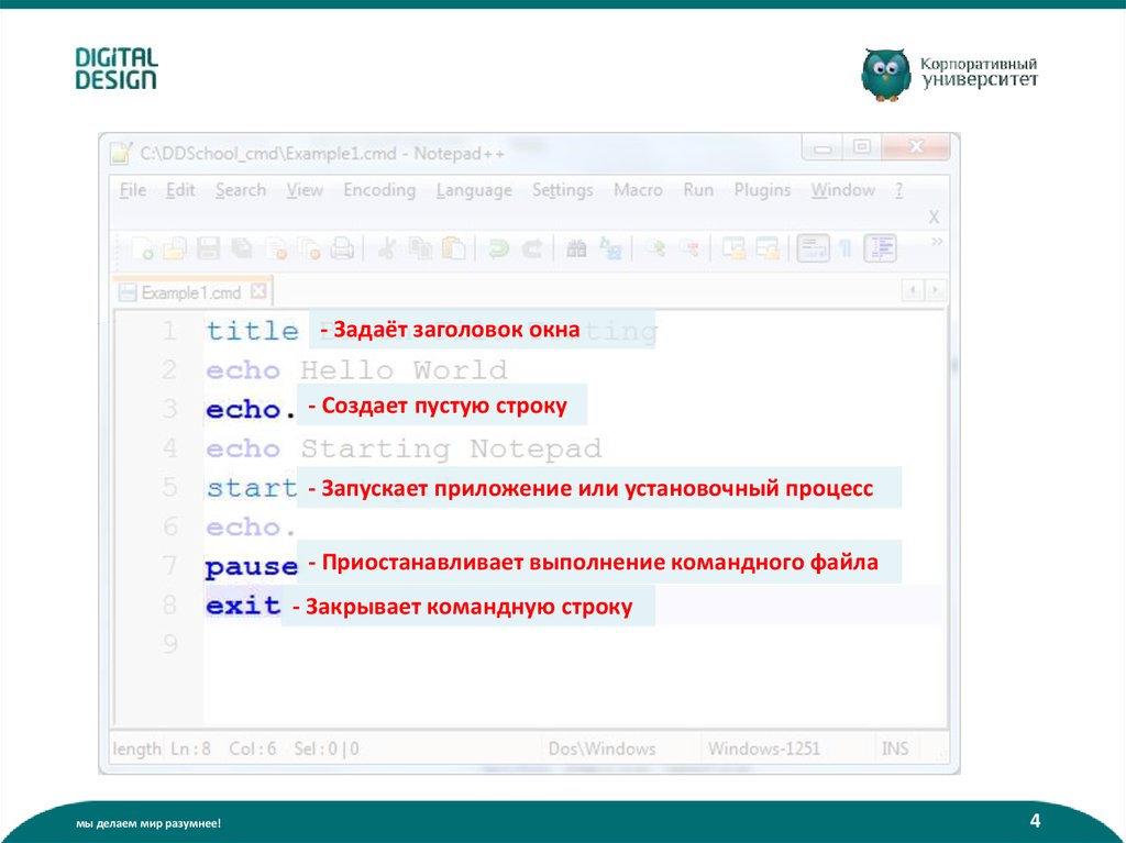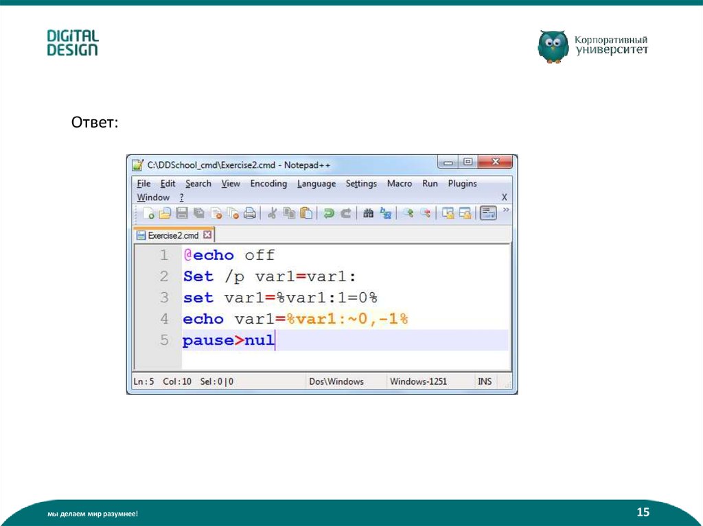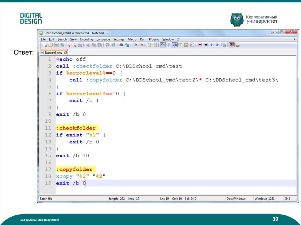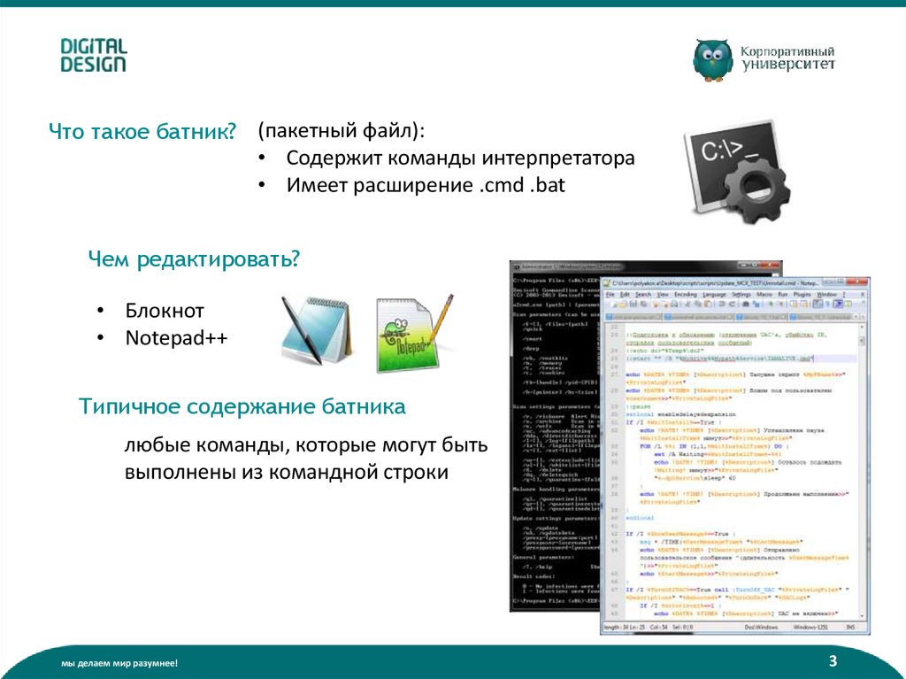 Что такое батник? (пакетный файл):• Содержит команды интерпретатора