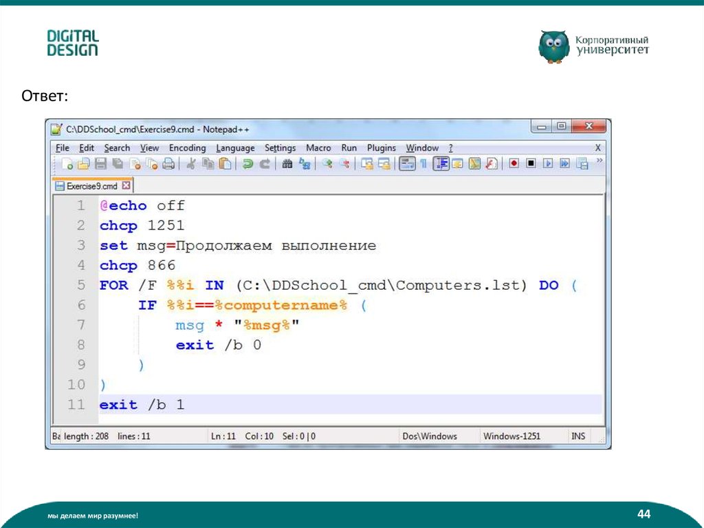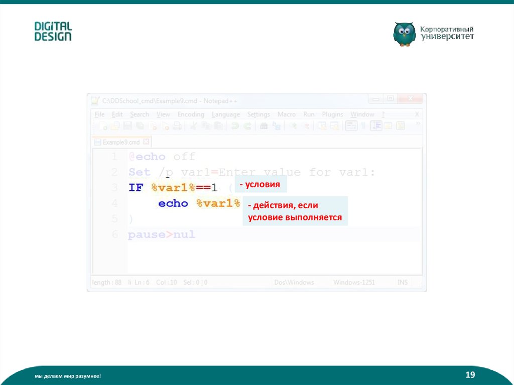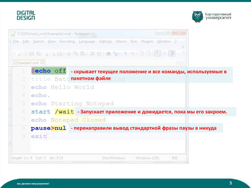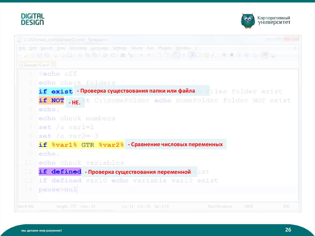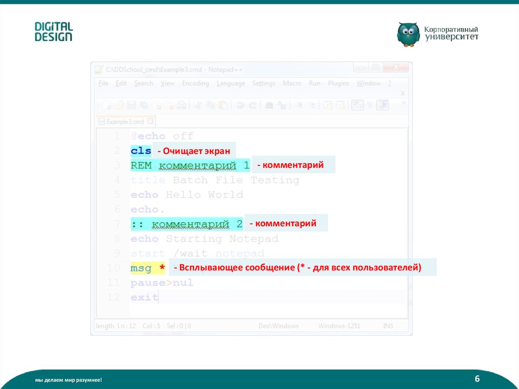 Что такое батник? (пакетный файл):• Содержит команды интерпретатора