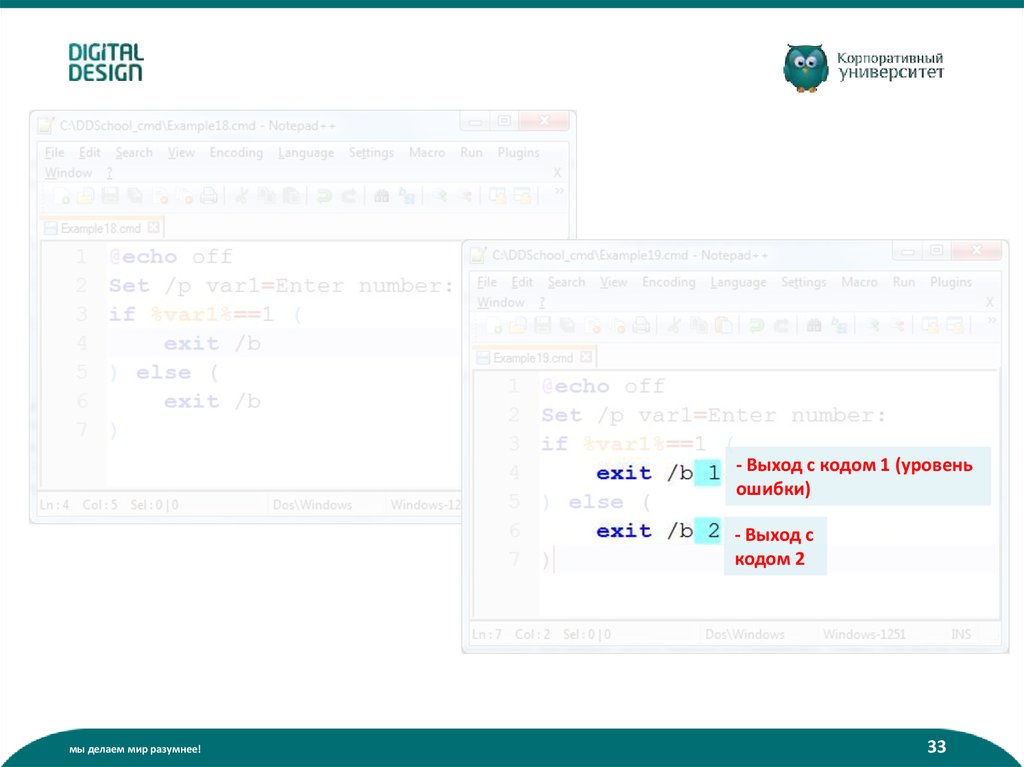 - Выход с кодом 1 (уровеньошибки)