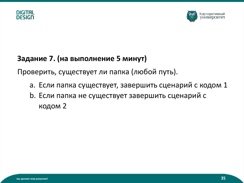 Задание 7. (на выполнение 5 минут)Проверить, существует ли папка (любой путь).
