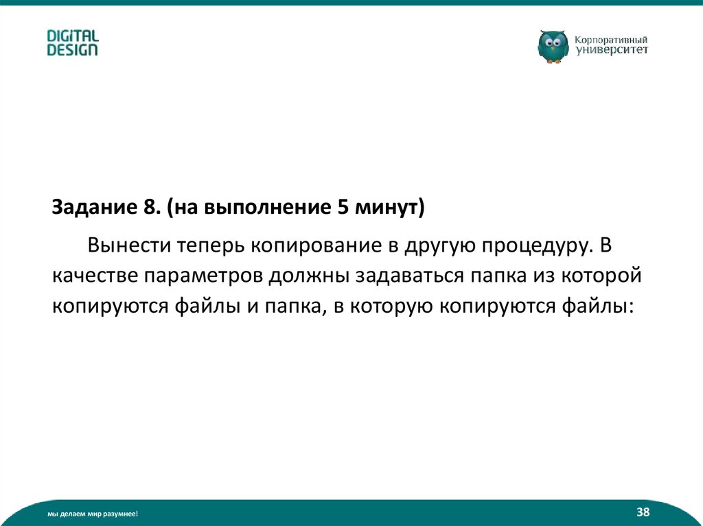 Задание 8. (на выполнение 5 минут)Вынести теперь копирование в другую процедуру. В