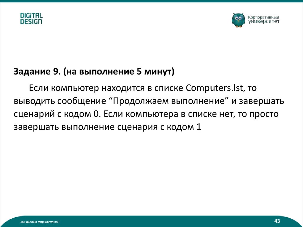 Задание 9. (на выполнение 5 минут)Если компьютер находится в списке Computers.lst, то
