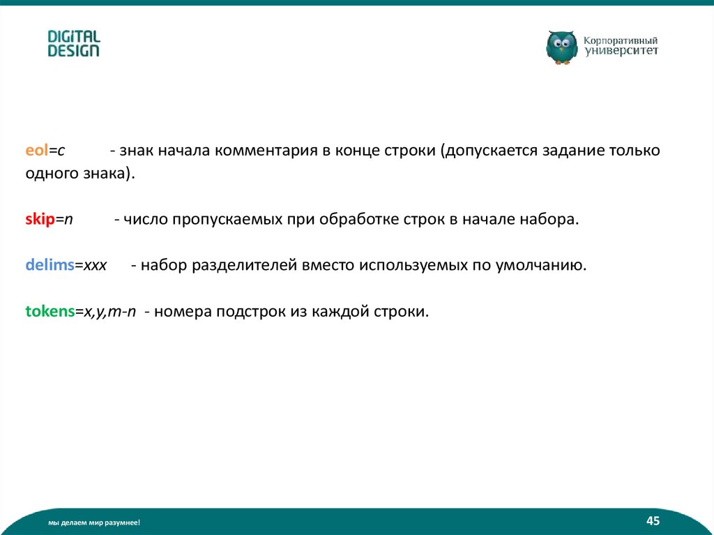 eol=c- знак начала комментария в конце строки (допускается задание только
