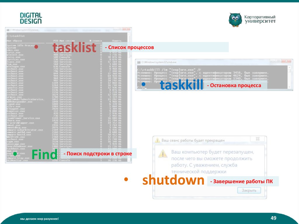 • tasklist- Список процессов