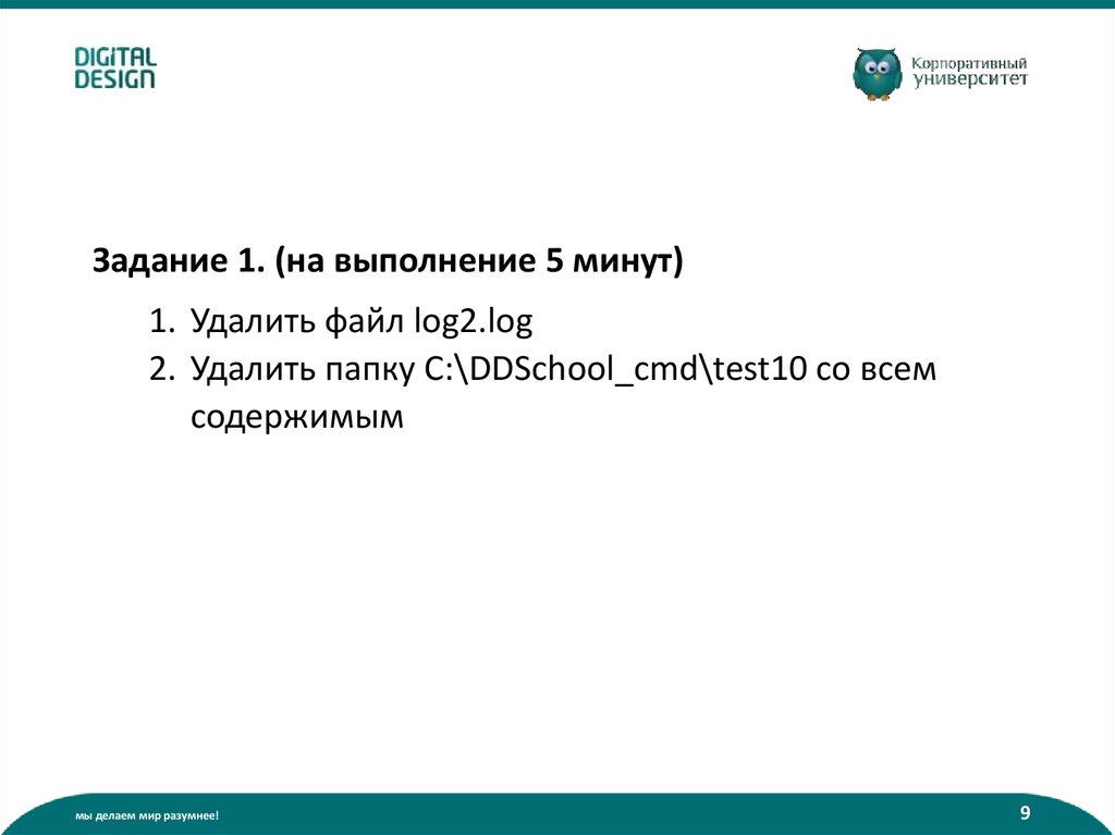 Задание 1. (на выполнение 5 минут)1. Удалить файл log2.log