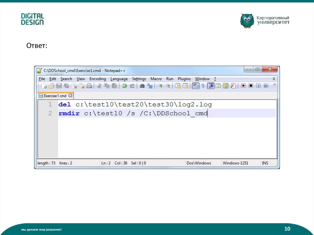 2. Удалить папку C:\DDSchool_cmd\test10 со всем