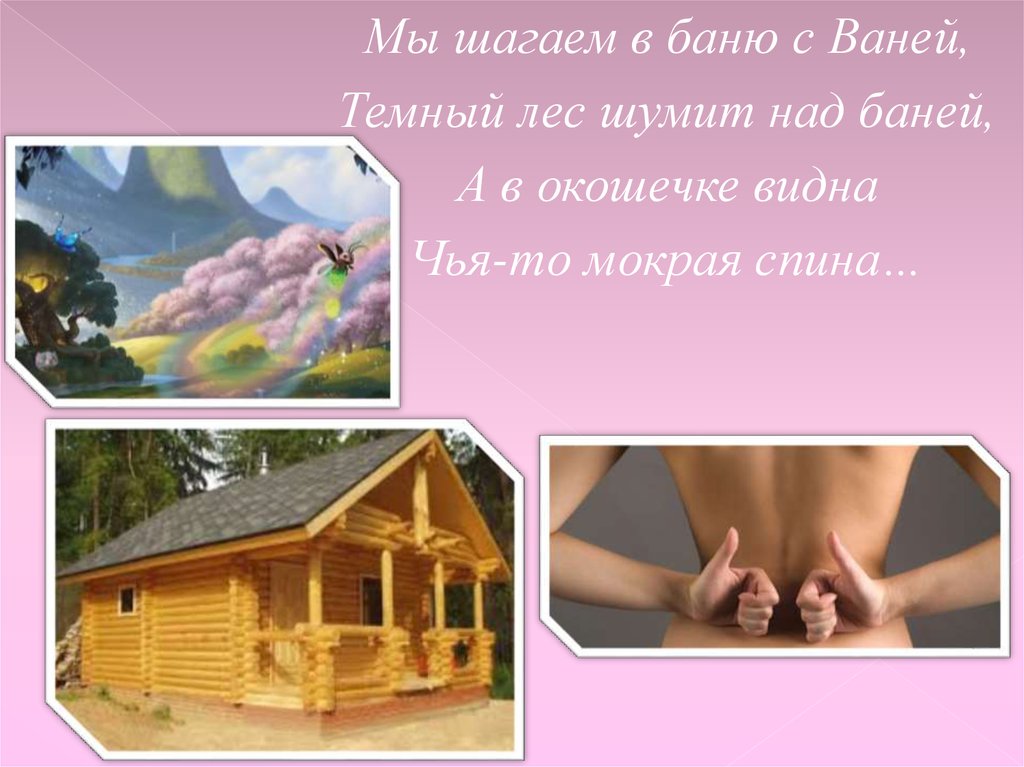 Мы шагаем в баню с Ваней,Темный лес шумит над баней,