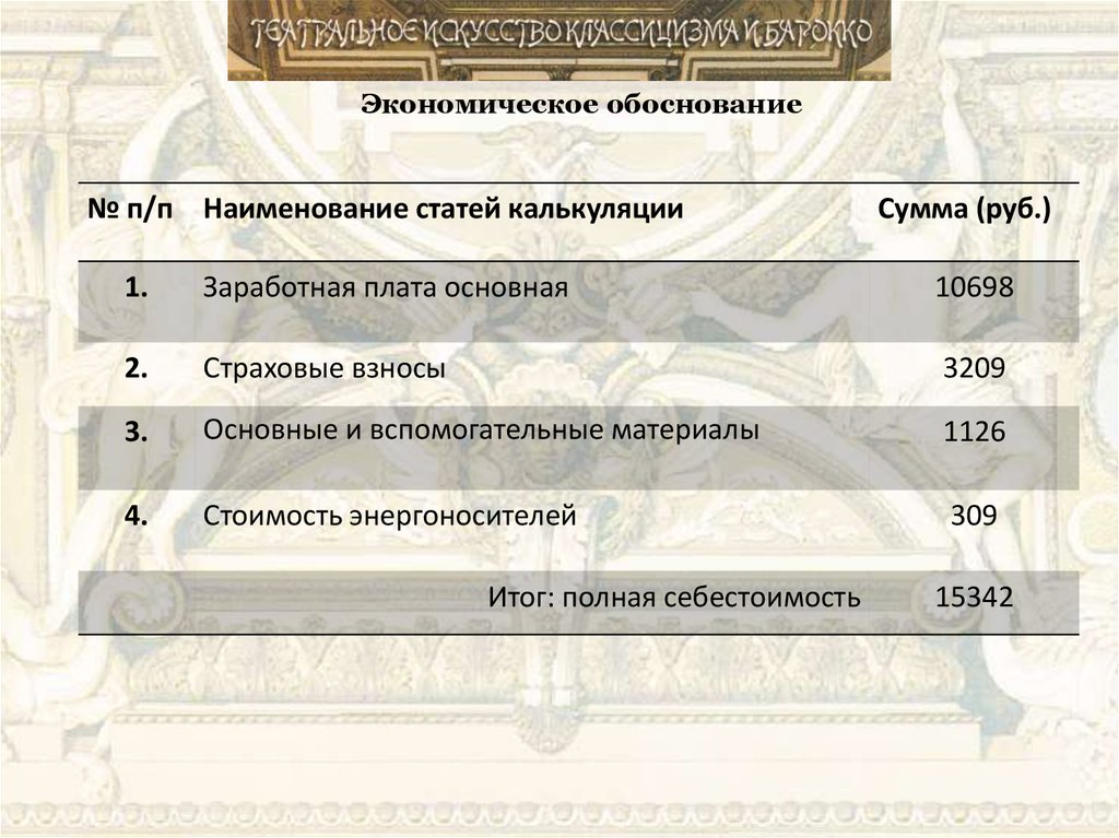 Экономическое обоснование№ п/п Наименование статей калькуляции