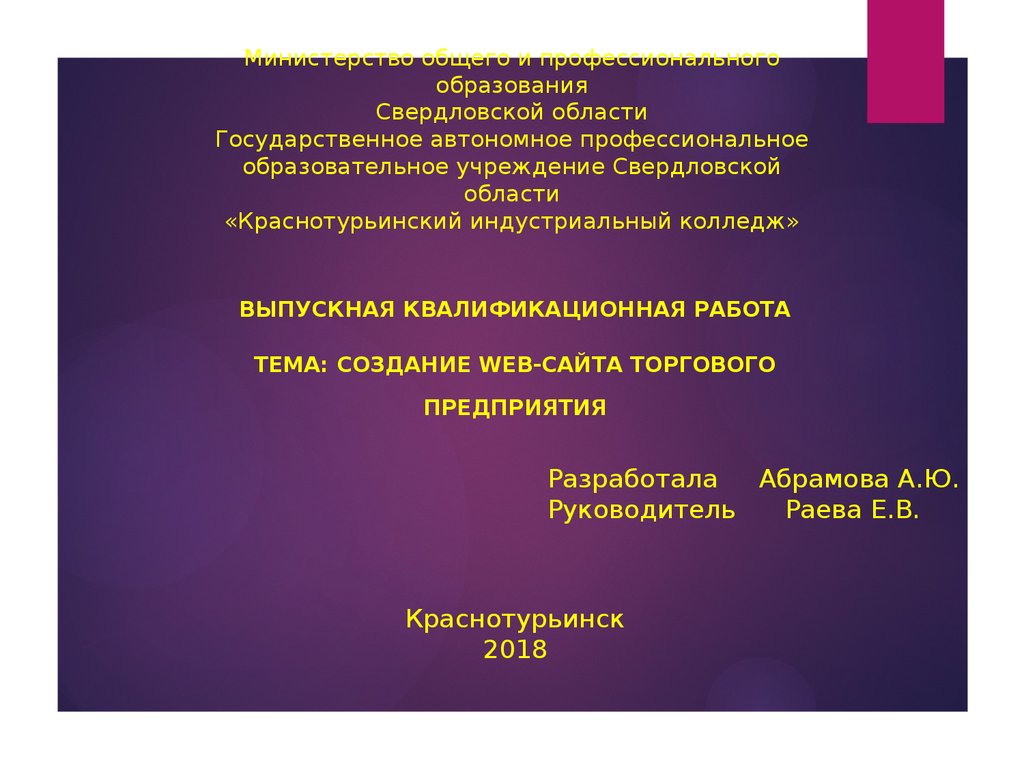 1. Министерство общего и профессионального образования Свердловской области Государственное автономное профессиональное
