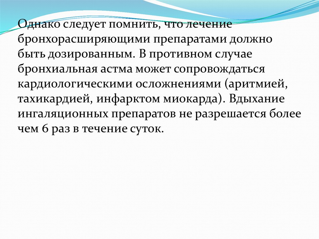 Однако следует помнить, что лечениебронхорасширяющими препаратами должно