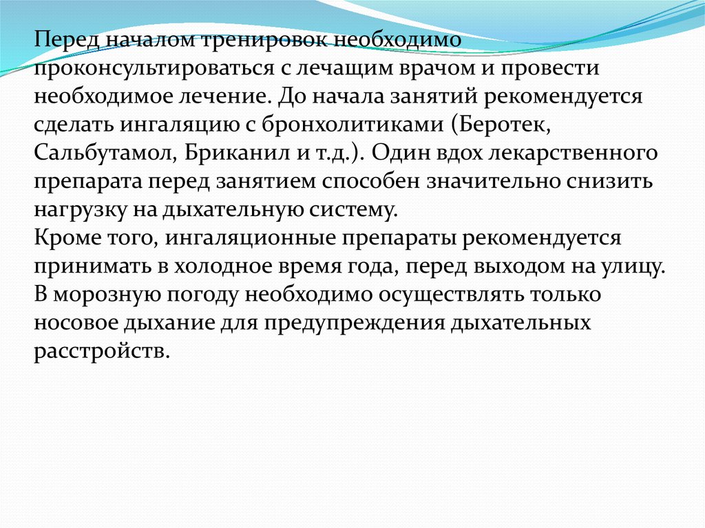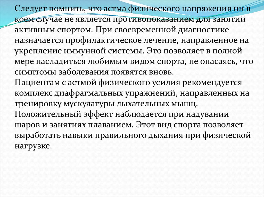 Следует помнить, что астма физического напряжения ни вкоем случае не является противопоказанием для занятий