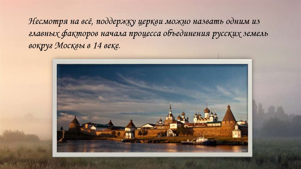 Несмотря на всё, поддержку церкви можно назвать одним изглавных факторов начала процесса объединения русских земель
