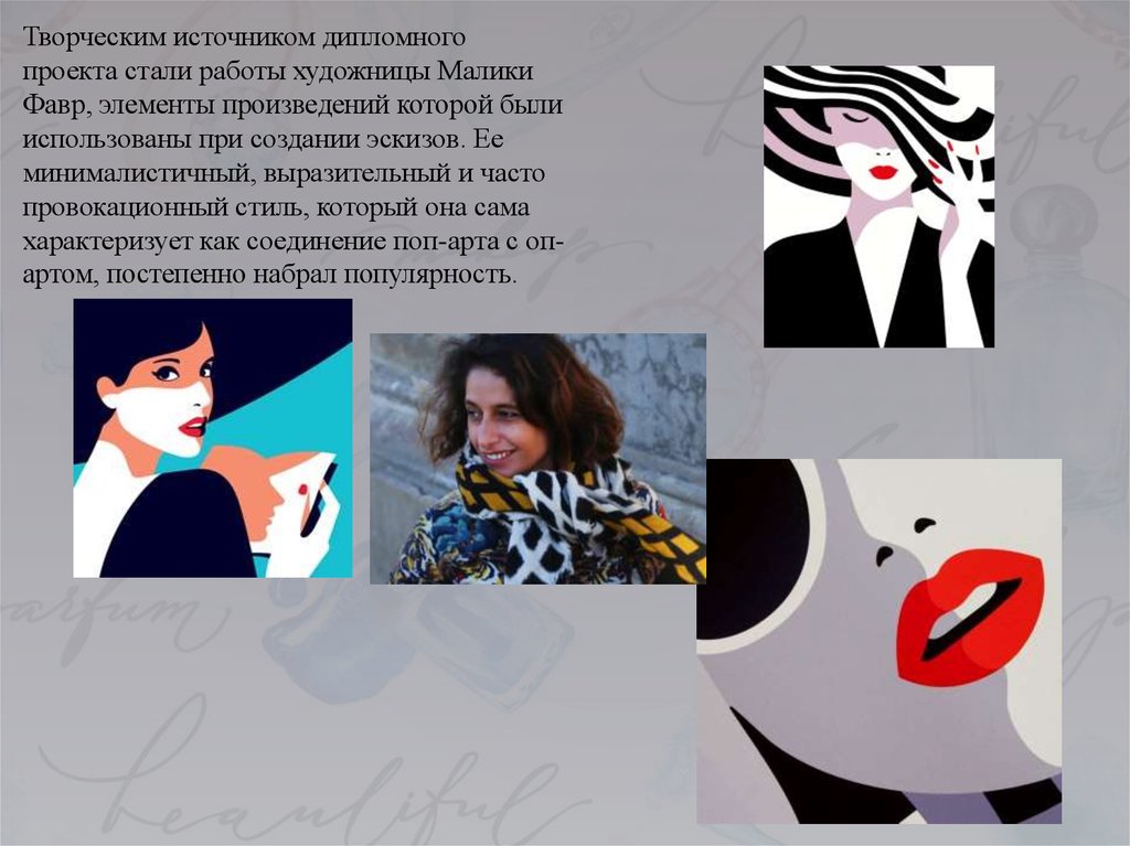 Творческим источником дипломногопроекта стали работы художницы Малики