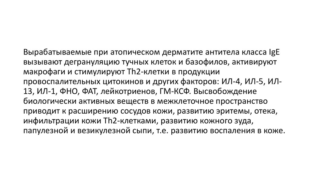 Вырабатываемые при атопическом дерматите антитела класса IgЕвызывают дегрануляцию тучных клеток и базофилов, активируют