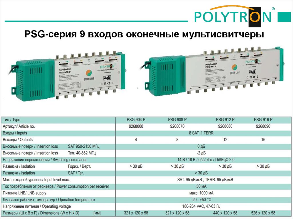 PSG-серия 9 входов оконечные мультисвитчеры20.06.2018