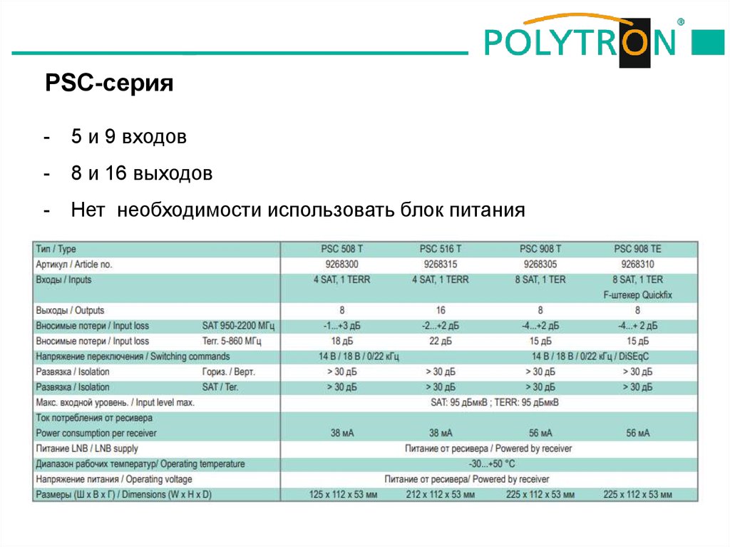 PSC-серияМультисвитчи с питанием от ресивера