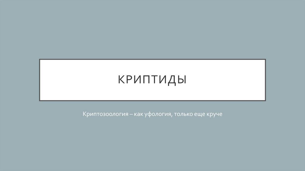 КРИПТИДЫКриптозоология – как уфология, только еще круче