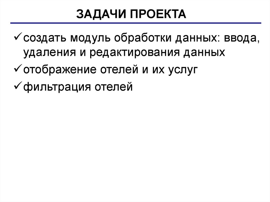 ЗАДАЧИ ПРОЕКТАсоздать модуль обработки данных: ввода,
