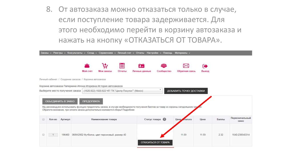 8. От автозаказа можно отказаться только в случае,если поступление товара задерживается. Для