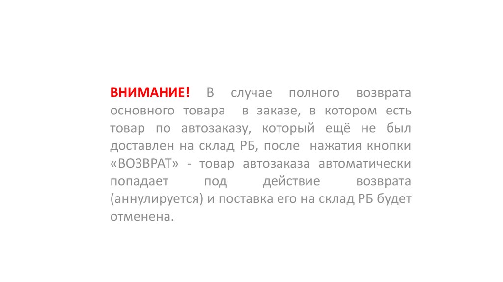 «ВОЗВРАТ» - товар автозаказа автоматически