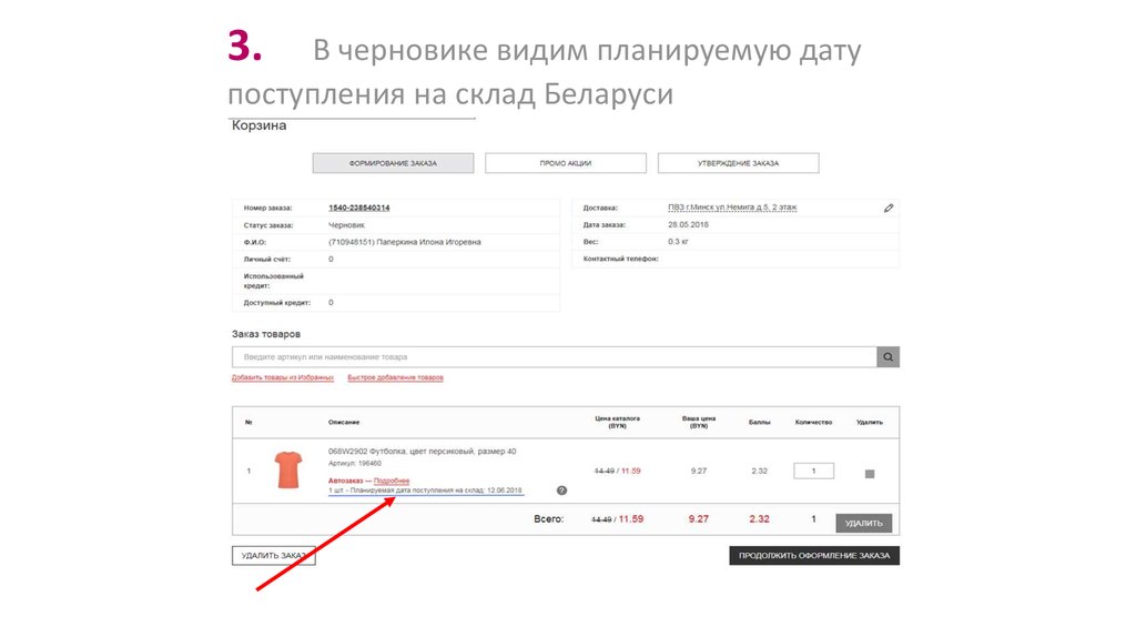 Обратите внимание на то, что по прибытию товара по автозаказу на