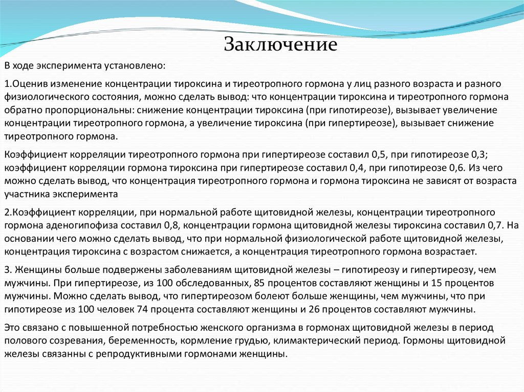 основании чего можно сделать вывод, что при нормальной физиологической работе щитовидной железы,