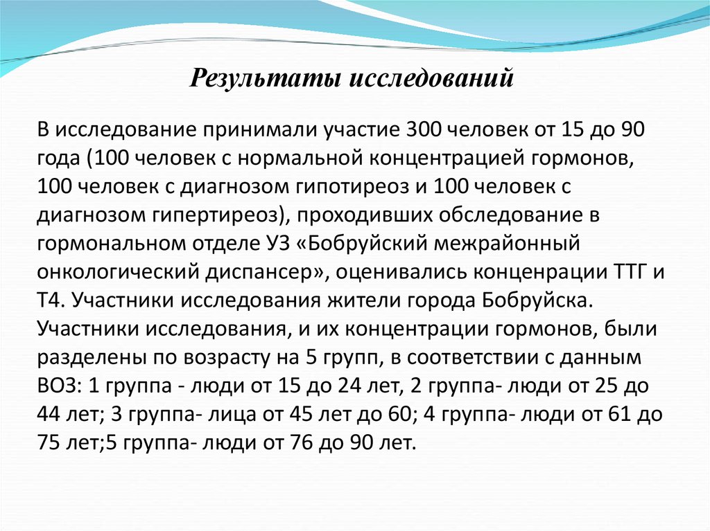 Результаты исследованийВ исследование принимали участие 300 человек от 15 до 90