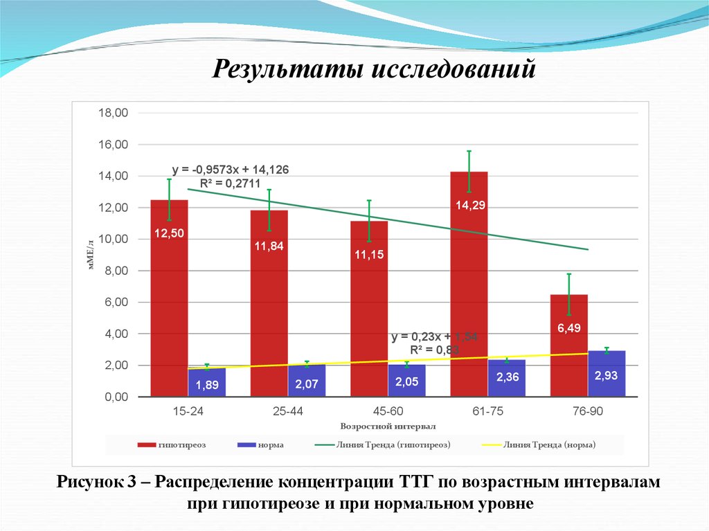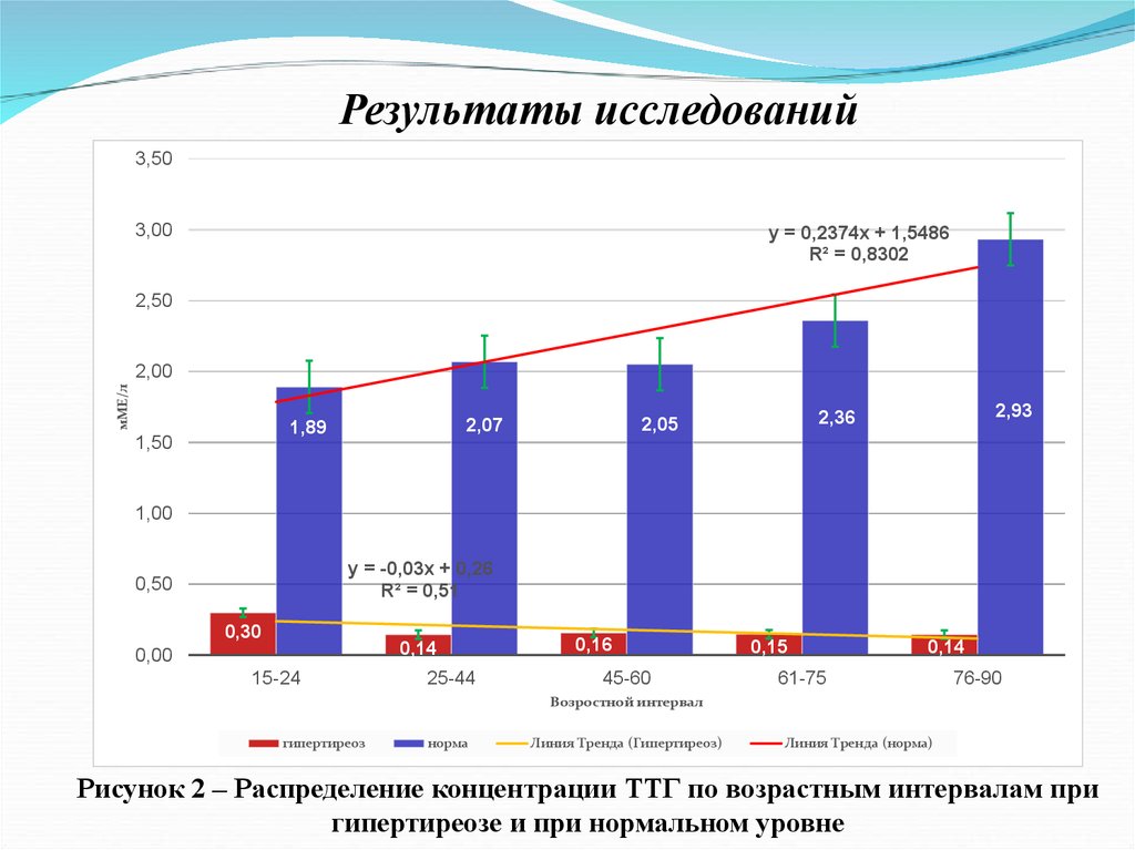 Рисунок 3 – Распределение концентрации ТТГ по возрастным интервалам