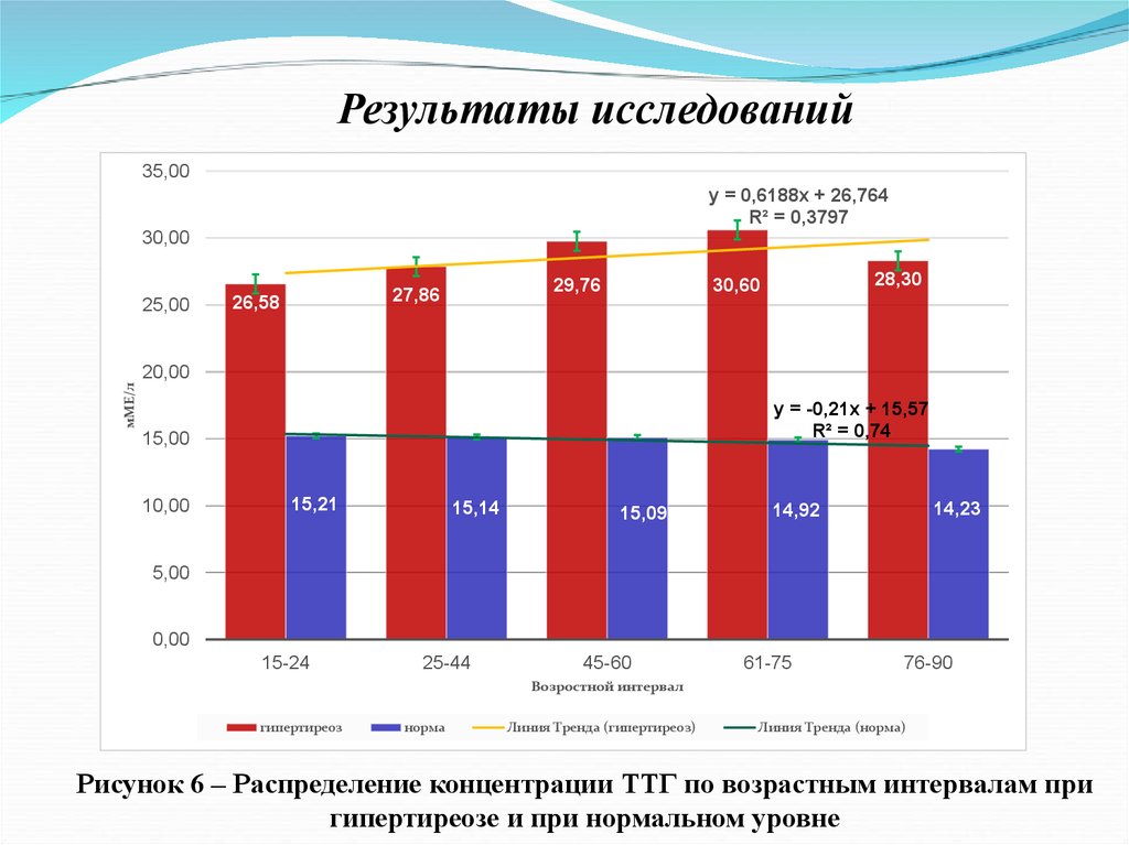 Рисунок 6 – Распределение концентрации ТТГ по возрастным интервалам при