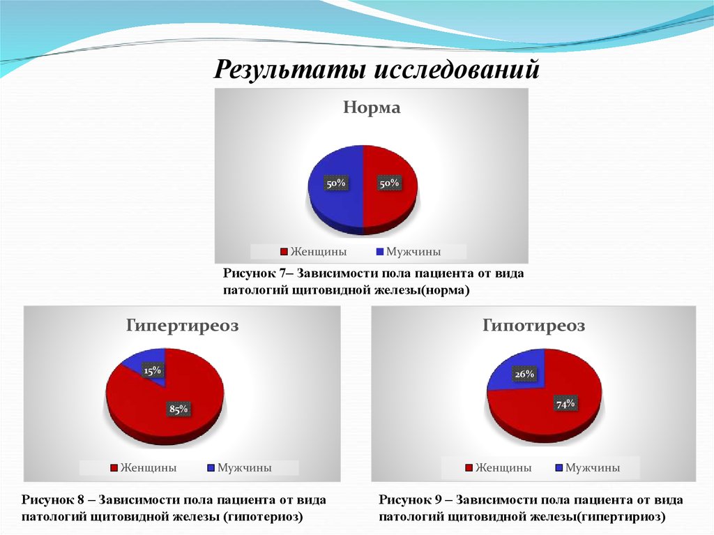 мужчины. Можно сделать вывод, что гипертиреозом болеют больше женщины, чем мужчины, что при