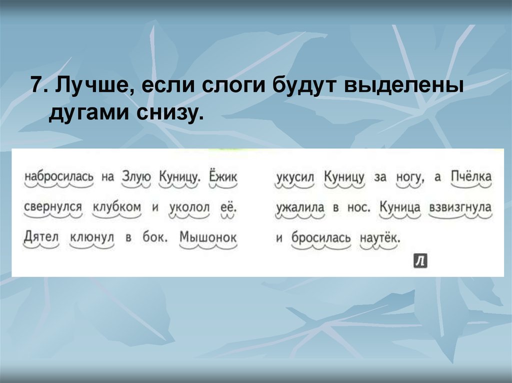 7. Лучше, если слоги будут выделеныдугами снизу.