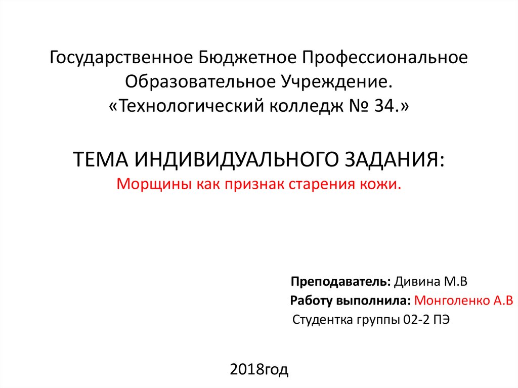 1. Государственное Бюджетное Профессиональное Образовательное Учреждение. «Технологический колледж № 34.» ТЕМА ИНДИВИДУАЛЬНОГО