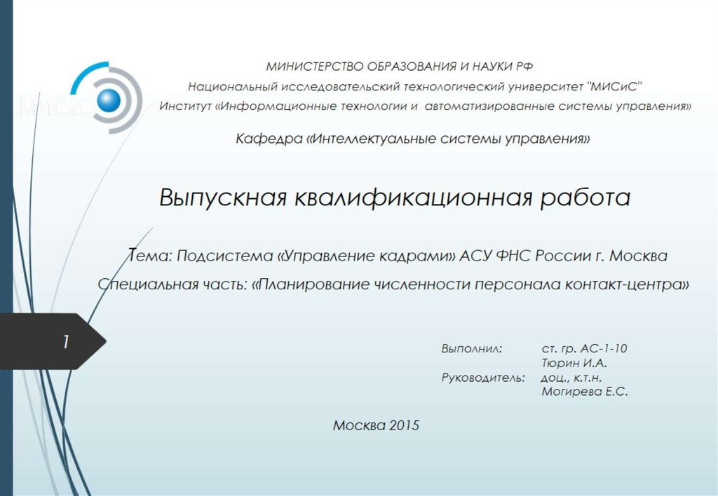 Подсистема «Управление кадрами» АСУ ФНС России. Специальная часть: «Планирование численности персонала контакт-центра»