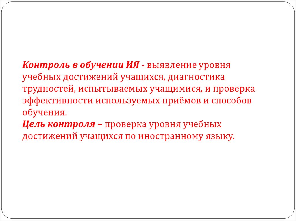 Контроль в обучении ИЯ - выявление уровняучебных достижений учащихся, диагностика