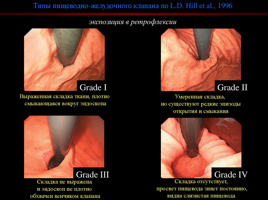 Типы пищеводно-желудочного клапана по L.D. Hill et al., 1996экспозиция в ретрофлексии